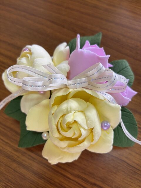 こちらのガーデニアとバラのアレンジも優しく爽やかな雰囲気ですね💕